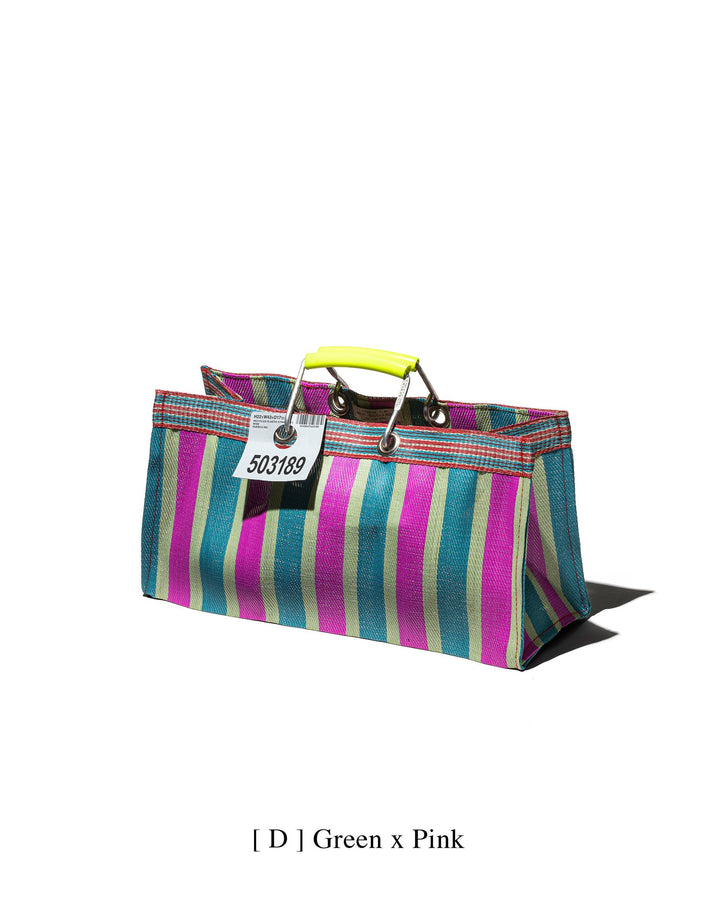This striped bag, crafted from recycled plastic, strikes the perfect balance between style and function, a thoughtful companion for everyday life.