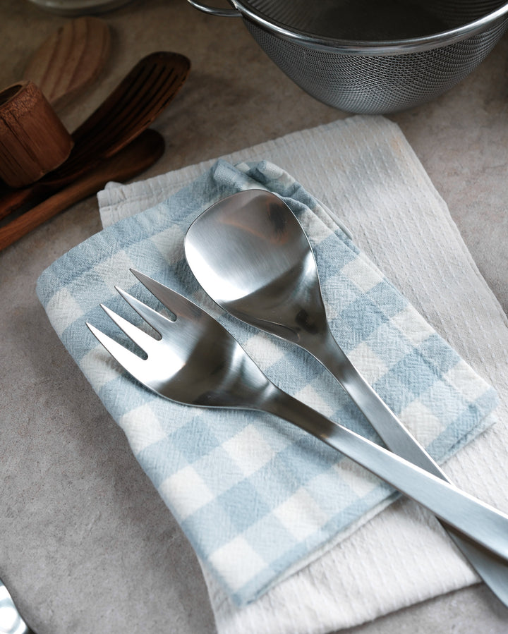 Easy to clean and dishwasher safe, this pair of stainless steel salad servers is expertly crafted by artisans in Niigata using a large press machine to form each piece individually. Stylish and practical, they make a sophisticated addition to any dining table.