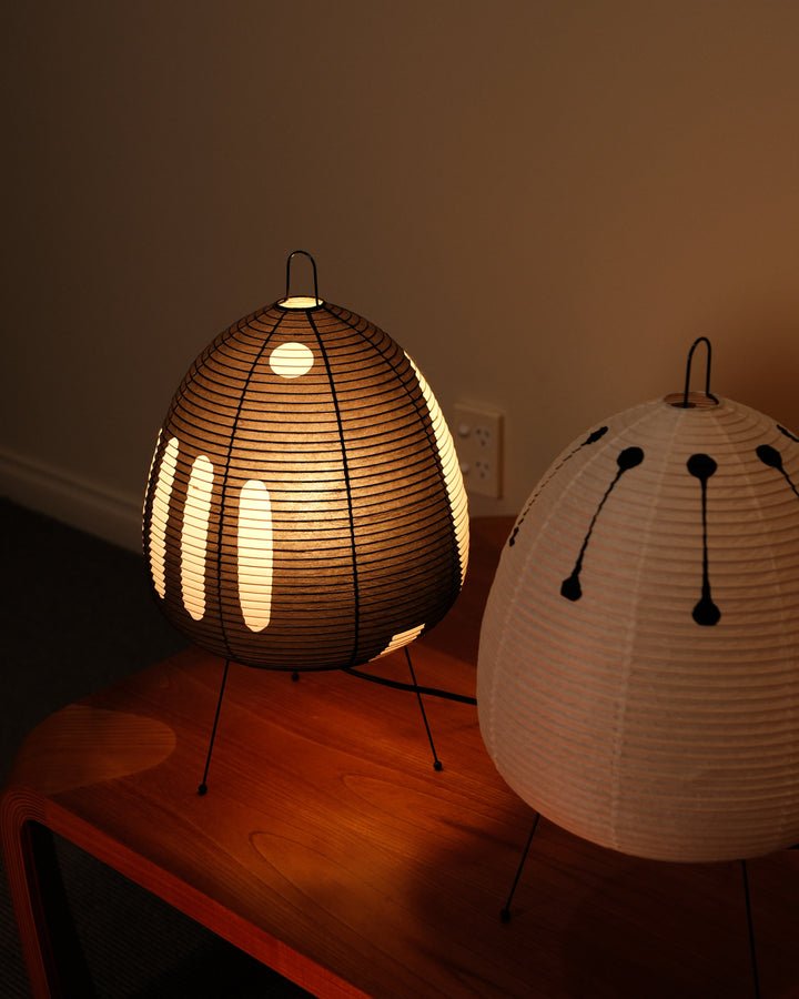 The Akari lights are handcrafted of bamboo ribbing and translucent washi paper that is made from the inner bark of the mulberry tree. Isamu Noguchi has compared the light of Akari to sunlight filtered through traditional shōji paper doors – the light sculptures create a warm glow and pleasant ambience. According to Noguchi, "All that you require to start a home are a room, a tatami, and Akari.”