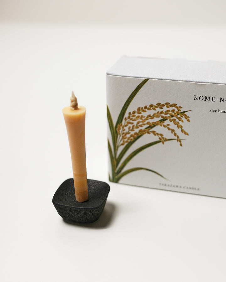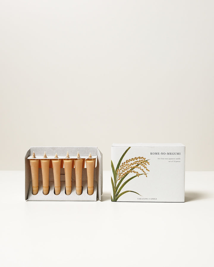 “KOME-NO-MEGUMI” means “the blessing of rice” in Japanese. Rice has been an important part of Japanese life for centuries. These candles are made from rice bran wax and burn for about 30 minutes — perfect for brewing a cup of coffee, listening to music, or simply enjoying a quiet moment of relaxation.
