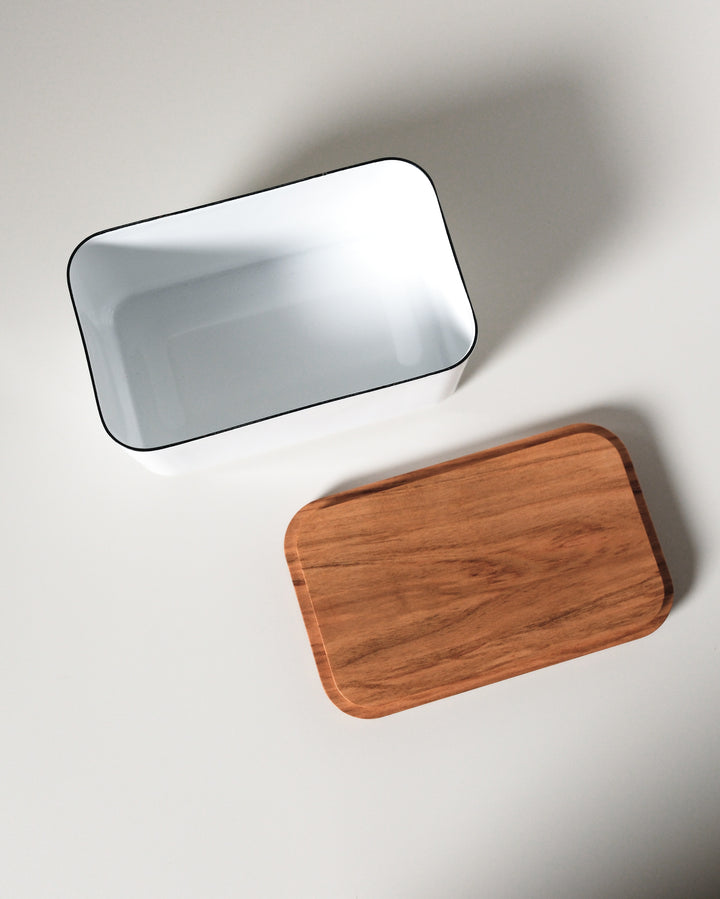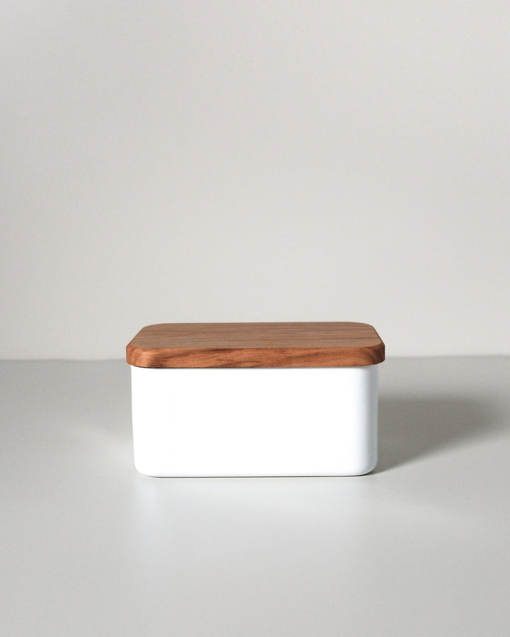 The Noda Horo Enamel Butter Dish with Solid Cherry Wood Lid is a beautifully designed storage solution for your favorite butter. Made from durable, toxin-free enamelware, it keeps food fresh and germ-free while being long-lasting and easy to clean. The solid Japanese cherry wood lid fits securely, adding a natural touch to its minimalist design. Safe for refrigerator use, this elegant butter dish is both practical and stylish for any kitchen.