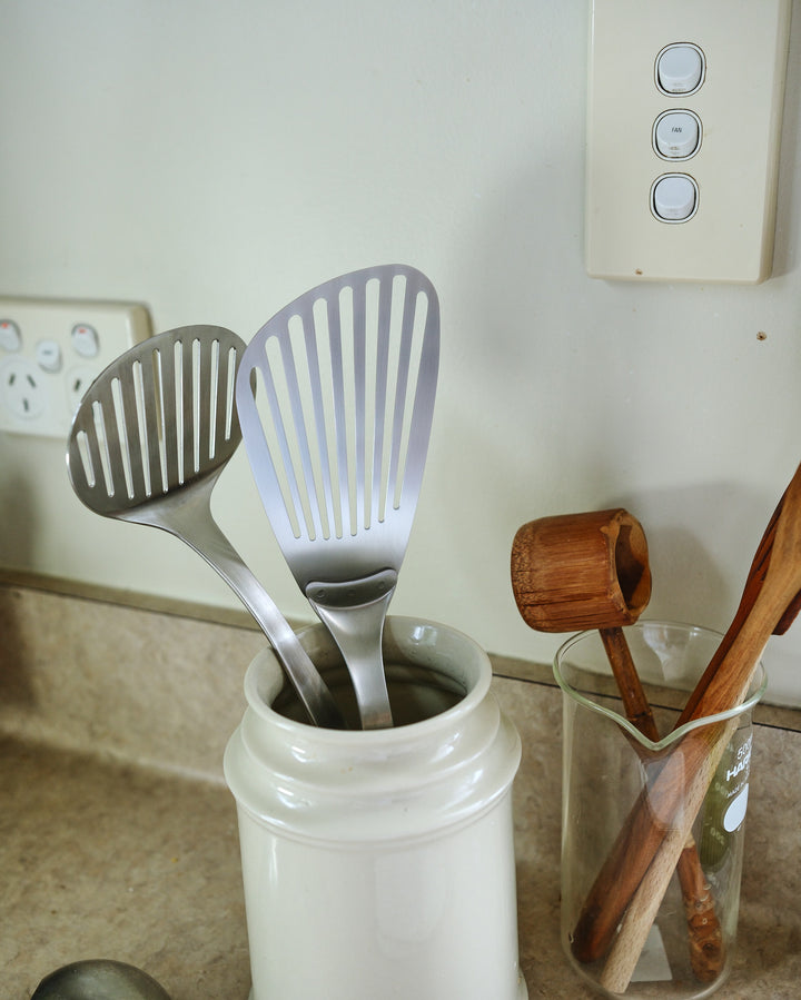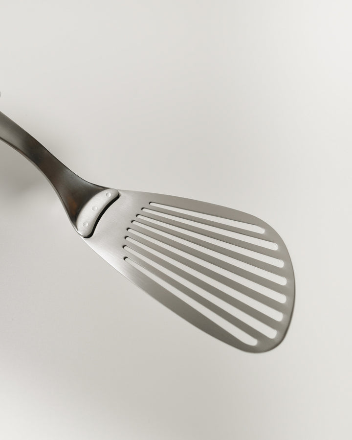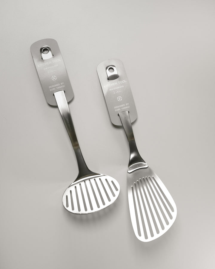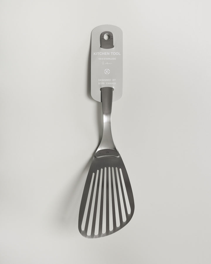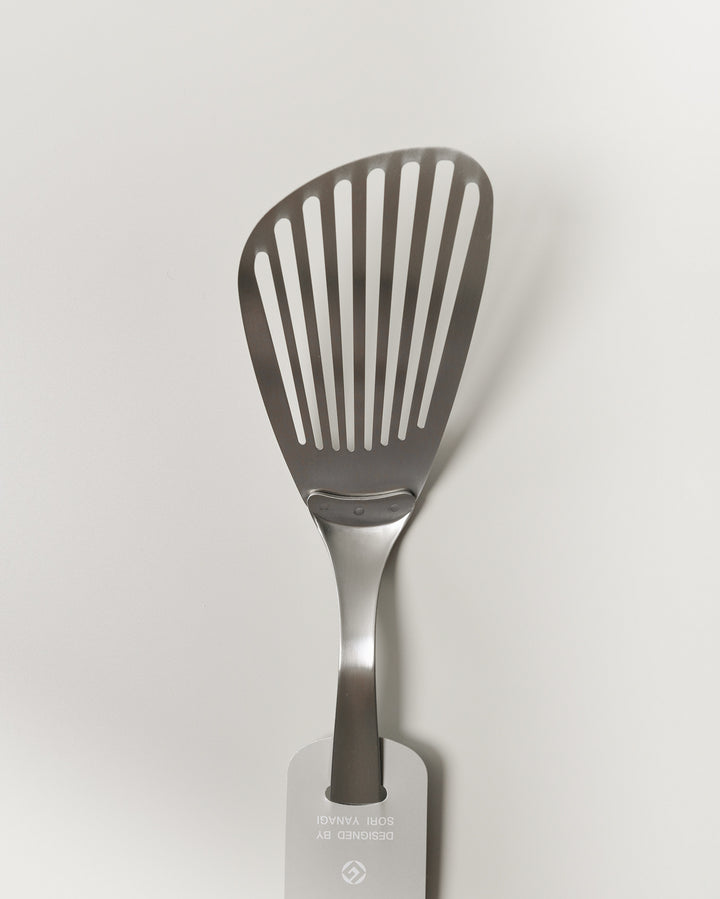 The Sori Yanagi Batter Beater Spatula is a distinguished kitchen tool designed by the renowned Japanese industrial designer Sori Yanagi. Made entirely of stainless steel, it measures 308mm and is perfect for a range of culinary tasks, including flipping, serving, mixing, and stir-frying ingredients. Its sleek, durable design ensures long-lasting use while providing functionality and elegance in the kitchen.