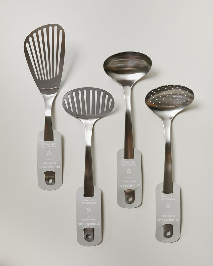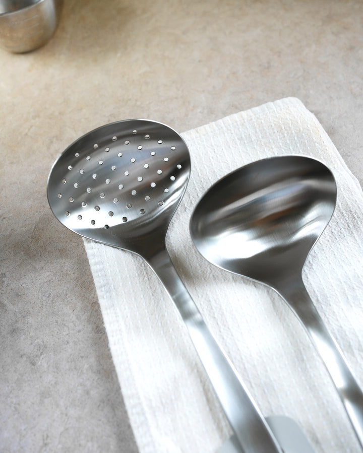 The Sori Yanagi Stainless Steel Ladle is a beautifully designed kitchen essential, crafted in Japan for durability and ease of use. Made from high-quality stainless steel, it features a sleek, ergonomic handle for a comfortable grip and a perfectly curved bowl for smooth serving. Ideal for soups, stews, and sauces, this ladle combines functionality with Sori Yanagi’s signature minimalist elegance.