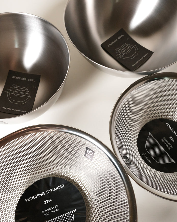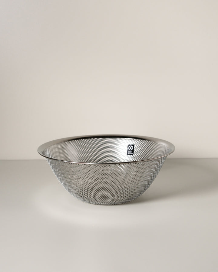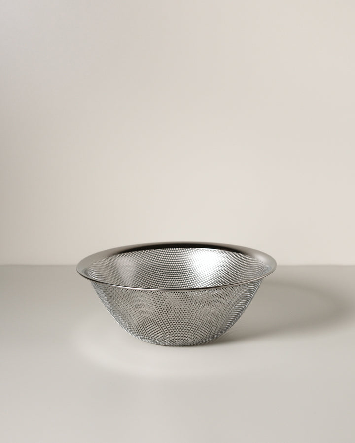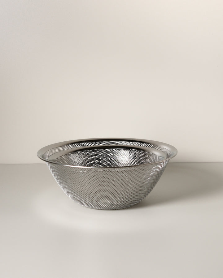 The Sori Yanagi Stainless Steel Perforated Colander is a sleek and durable kitchen tool, crafted in Japan from high-quality stainless steel. It's perfect for draining pasta, vegetables, and other foods with ease. The perforated design ensures quick and efficient draining, while the ergonomic handle provides a comfortable grip. Combining functionality with minimalist elegance, this colander is an essential addition to any kitchen.