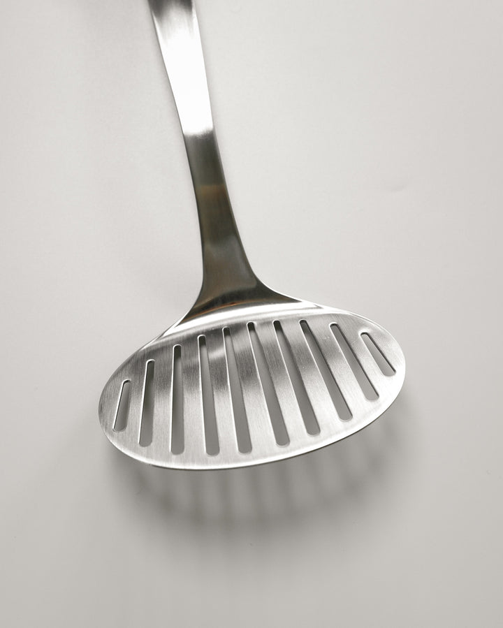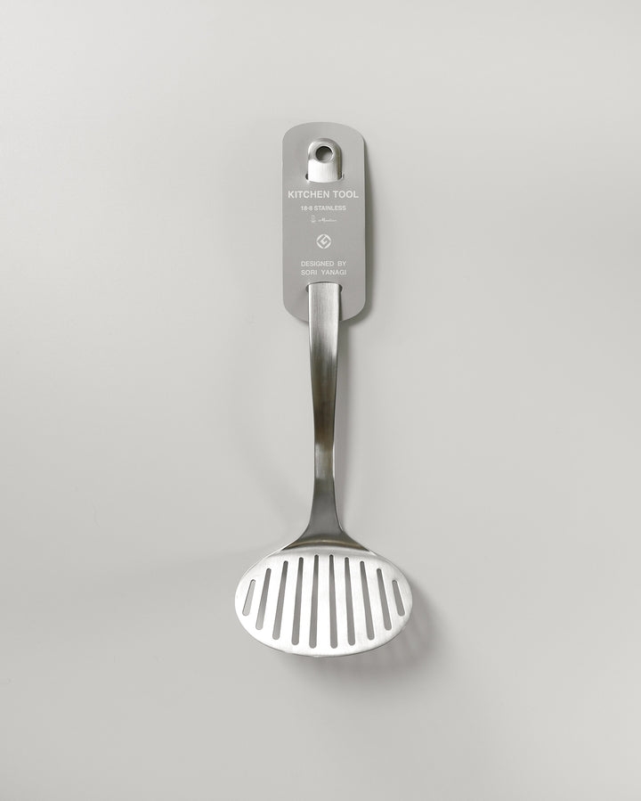 The Sori Yanagi Stainless Steel Slotted Turner is a beautifully crafted kitchen tool designed for precision and ease of use. Made in Japan from high-quality stainless steel, it features a sleek, ergonomic handle for a comfortable grip and slotted design for efficient draining. Ideal for flipping, lifting, and serving, this durable and versatile turner embodies Sori Yanagi’s signature blend of functionality and elegance.