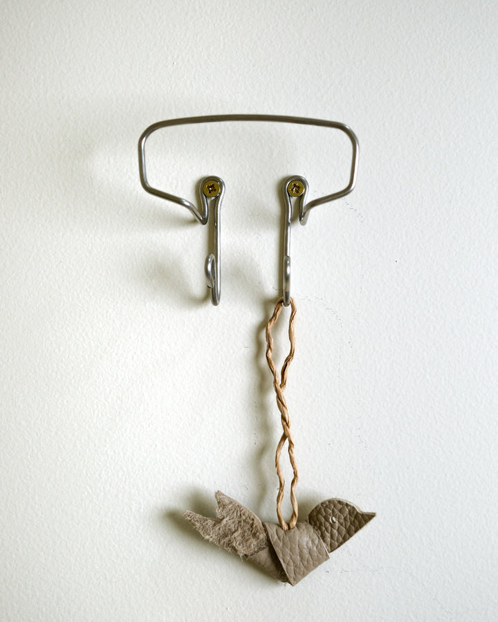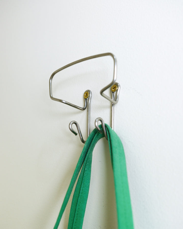 This premium stainless steel wall hook features three hanging points. The upper swoop is our favorite element and gently supports delicate garments, offering just the right amount of care. The two lower loops keep daily essentials like keys, bags, and the dog lead neatly in place.