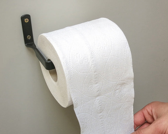 Flat steel bar, that via some twists and turns makes for a handsome toilet roll holder.