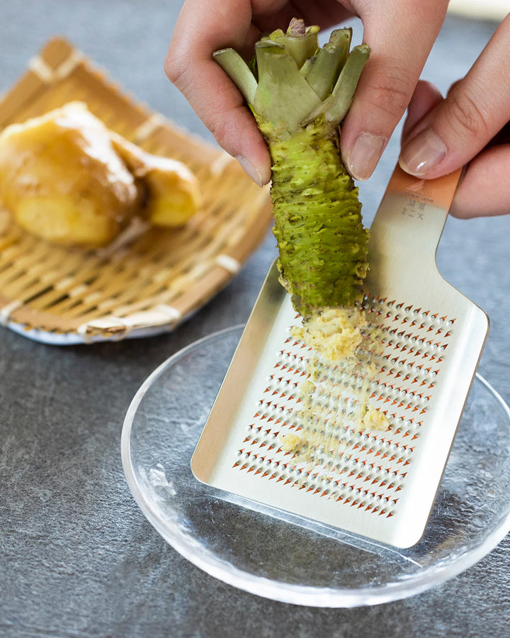 Crafted by skilled artisans in Tsubame, Japan, this grater is perfect for small, everyday use. It effortlessly grates ginger, wasabi, garlic, yuzu peel, lemon zest, and more. The razor-sharp grating surface produces fine, aromatic results while preserving the natural flavor and moisture of the ingredients.